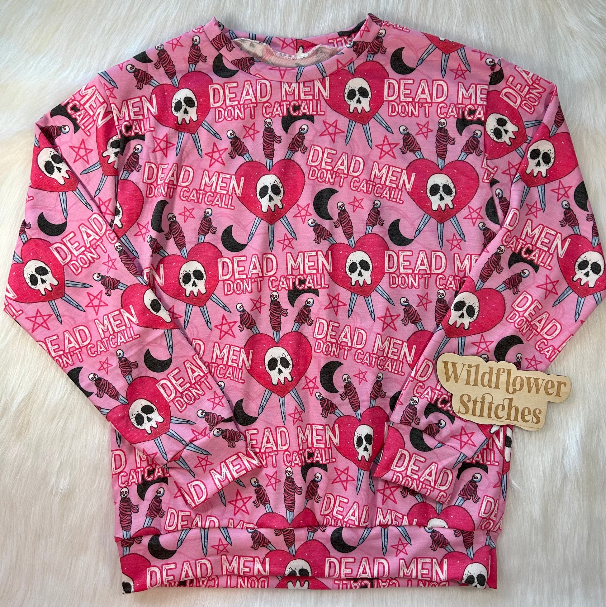 Sweatshirts are unisex and have a loose fit.